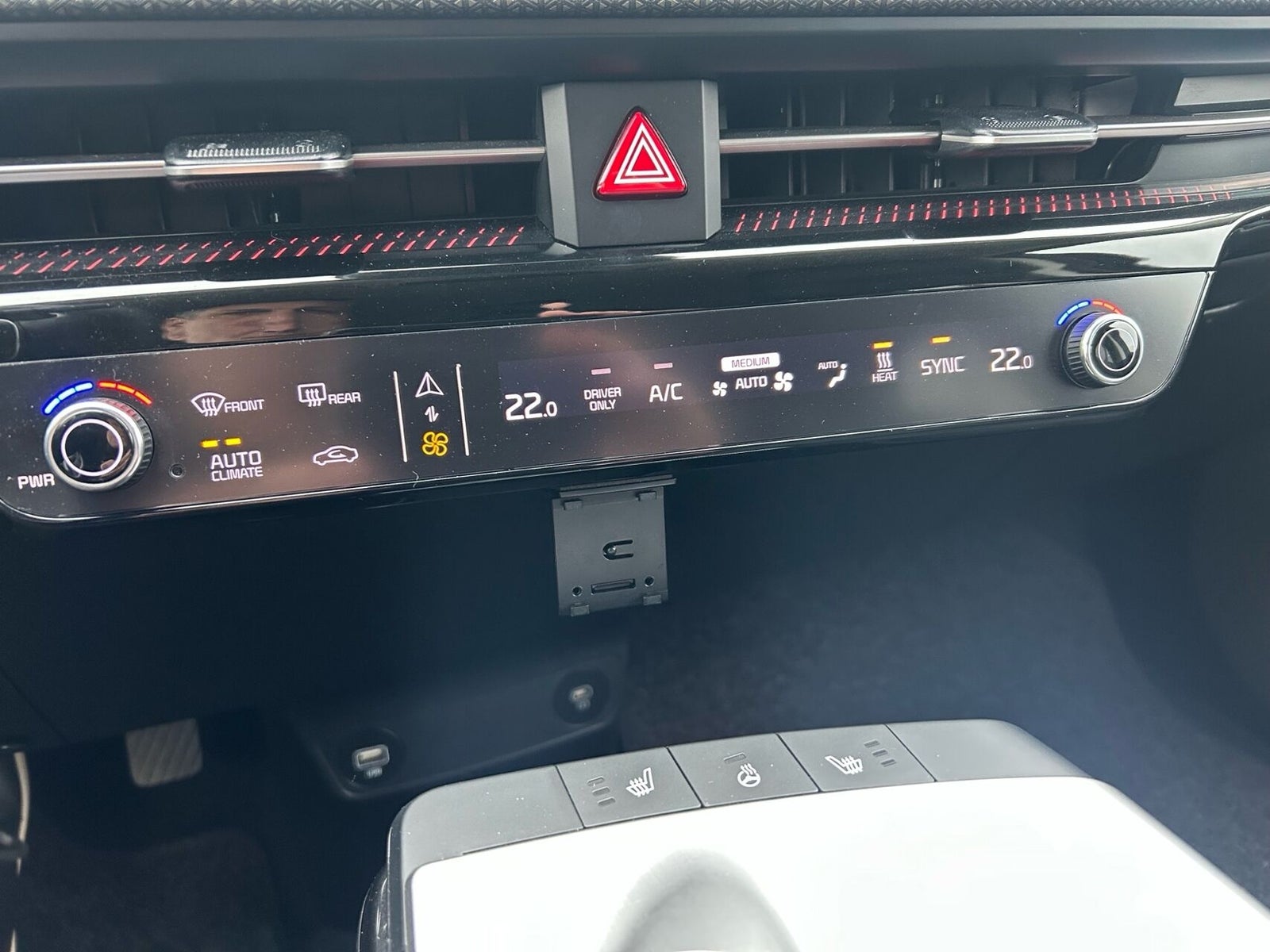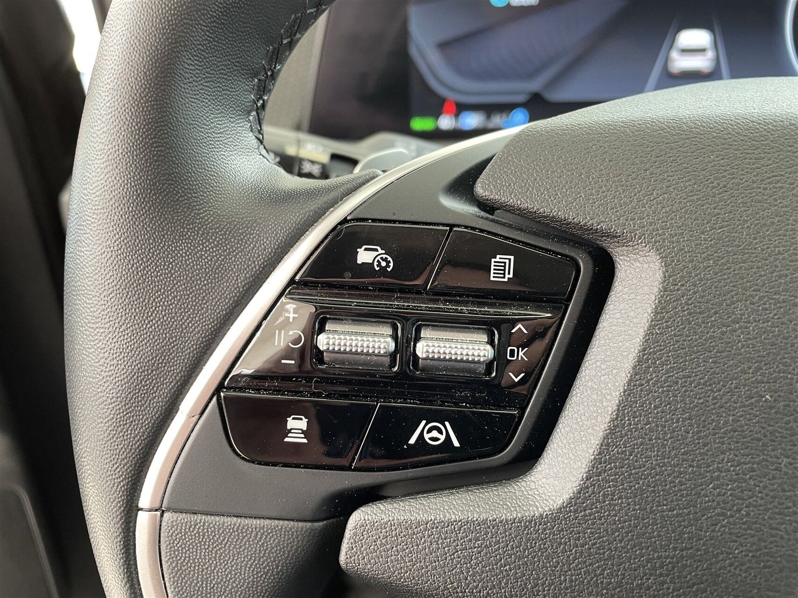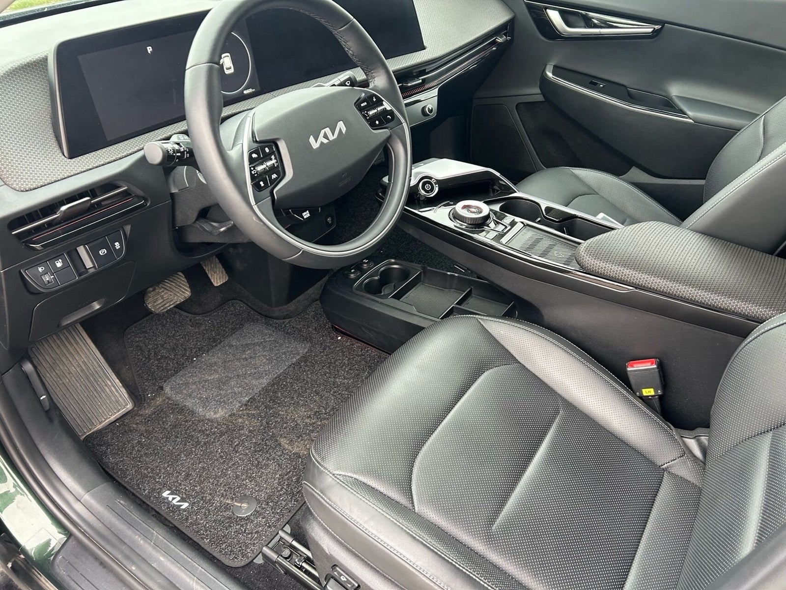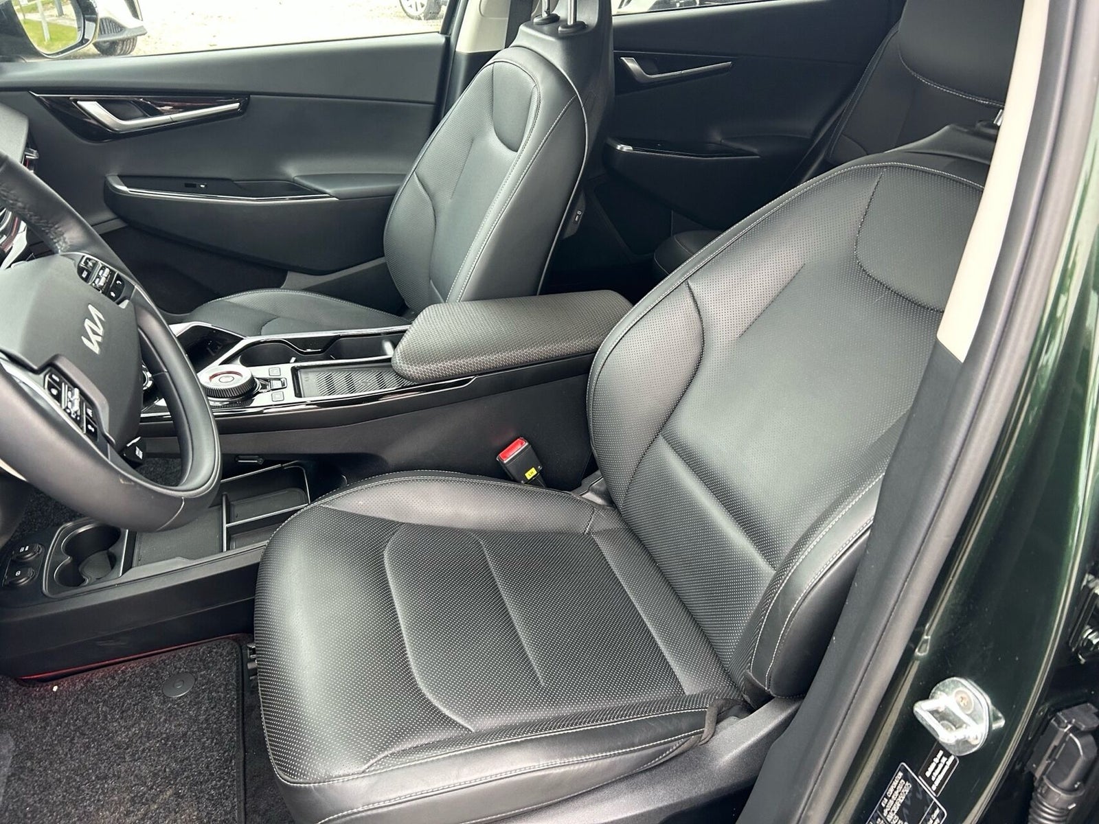 19" Alufælge · Aircondition · Android Auto · Apple CarPlay · Auto Light Control · Automatisk op-/nedblænding · Bakkamera m. dynamisk guide · DAB radio · Digital instrumentering · Drive Mode Select (Eco/Normal/Sport/Snow) · El indst. førersæde m. memory · El indst. passagersæde · El-foldbare spejle m. varme · El-justerbar lændestøtte · El-rudehejs for & bag · Elektrisk håndbremse · Fartbegrænser (limiter) · Fartpilot adaptiv · Fjernbetjent centrallås · Håndfri telefon · i-pedal (intelligent speeder) · Kia Connect (App styring) · Klimaanlæg 2-zoner · Kørecomputer · Multifunktionsrat · Navigation · Nøglefri betjening · Paddle shifter på rat (til styring af regenerering) · Parkeringssensor for & bag · Ratbetjent multimedie system · Regnsensor · Stemmebetjening · Sædevarme for · Touchskærm · Trådløs mobilopladning · Trykknapstart · 4-vejs justérbart vegansk læderrat m. varme · Armlæn · Bagagerumsdækken · Del kunstlæderkabine · Digital instrumentering · Dobbelt bagagerumsbund · Kopholder · Kunstlæder · Premium RELAXION forsæder · LED Ambientlight - Justérbar · Splitbagsæde · Dynamisk blinklys bag · Follow Me Home Light · Frunk · Fuld LED forlygter · LED baglygter · LED kørelys · Metallak · Mørktonede ruder bag · ABS · Autohold · Automatisk nødbremsesystem · Blindvinkelassistent · ESP · Førerovervågning med advarsel · Isofix · Nødbremse ifm. bakning · RCTA - Advarsel ved krydsende trafik bag · Sikker Udstignings Assist · Skiltegenkendelse · Vejbaneassistent