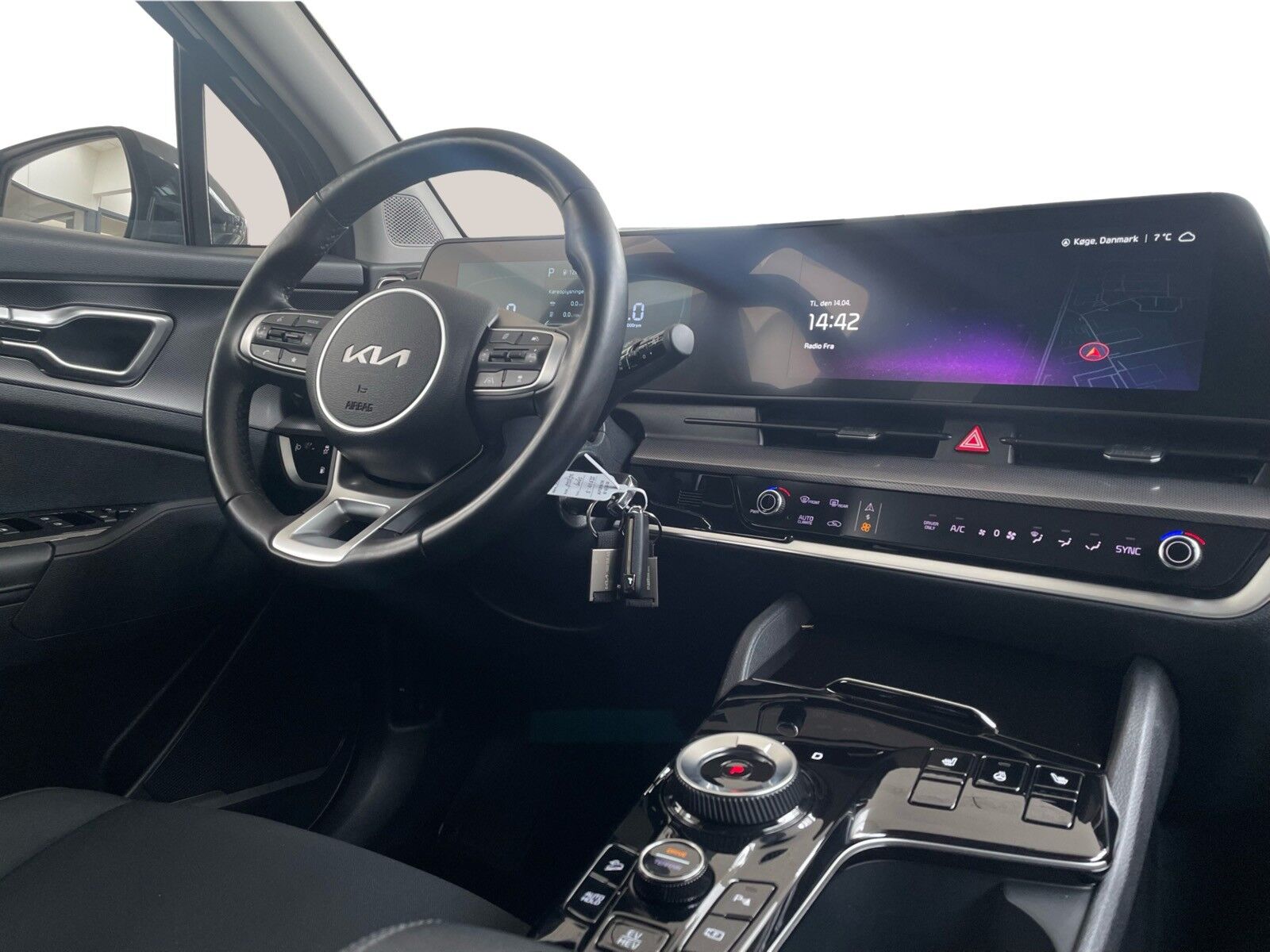 Metallak · Anhængertræk aftageligt · 19" Alufælge · Aircondition · Android Auto · Apple CarPlay · Aut. nedblændeligt bakspejl · Auto Light Control · Automatgear · Automatisk op-/nedblænding · Bakkamera m. dynamisk guide · Bluetooth · DAB radio · Elektrisk håndbremse · El-foldbare spejle m. varme · El-justerbar lændestøtte · El-rudehejs for & bag · Fartbegrænser (limiter) · Fartpilot adaptiv · Fjernbetjent centrallås · Håndfri telefon · Kia Connect (App styring) · Klimaanlæg 3-zoner · Kørecomputer · Multifunktionsrat · Navigation · Paddleshifter (gearskift på rattet) · Parkeringssensor for & bag · Regnsensor · Sædevarme i for- og bagsæderne · Touchskærm · USB C stik · Valgbare køreprogrammer · 4-vejs justérbart vegansk læderrat m. varme · Armlæn · Bagagerumsdækken · Højdejusterbart førersæde · Kopholder · Splitbagsæde 40:20:40 · LED baglygter · LED kørelys · Mørktonede ruder bag · Tagræling · ABS · Autohold · Automatisk nødbremsesystem · Bakkestartassist · ESP · Isofix · LKAS (Lane Keep Assist System) · Træthedsregistrering · Vejbaneassistent